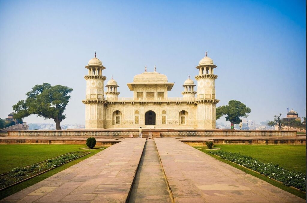 Surrounded by beautiful canals and Persian gardens, the Itimad-ud-Daulah Tomb is located very close to the megacity of Agra. The historic tomb complex includes a total of 5 buildings and is a reminder of a long history. The tomb was built between 1622 and 1628 and is a highlight of your India tour. Red sandstone slabs, magnificent Mughal architecture, and small minarets with a nostalgic feel make up this mausoleum. Four mighty minarets are surrounded by white marble and you can admire the tomb inside.