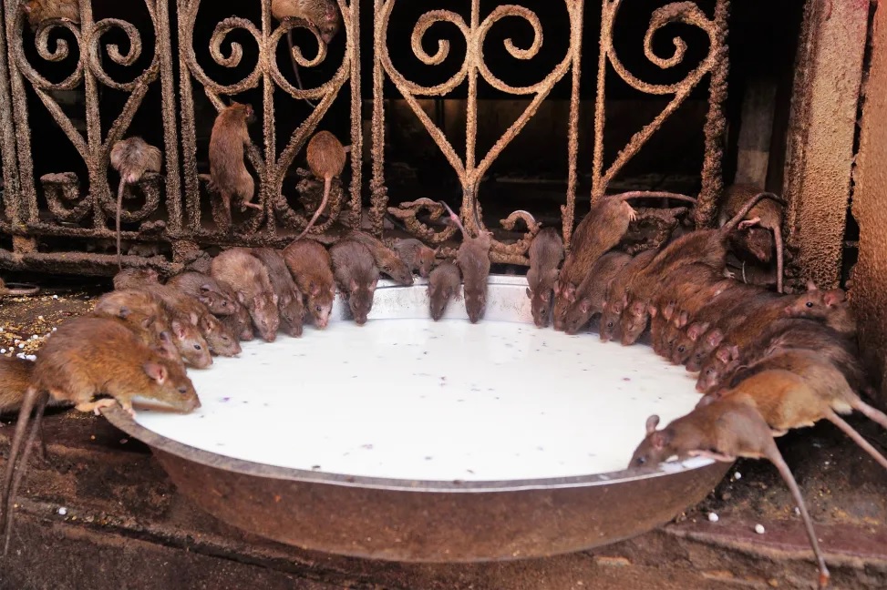 The black rats of the temple are known as kābā and are considered sacred, the devotees bring them cheese, sweets and milk. Legend has it that there are 3 white rats that bring luck if you see them, so you will find many people looking for them everywhere. It is also said that you will be lucky if one of the black rats touches you.