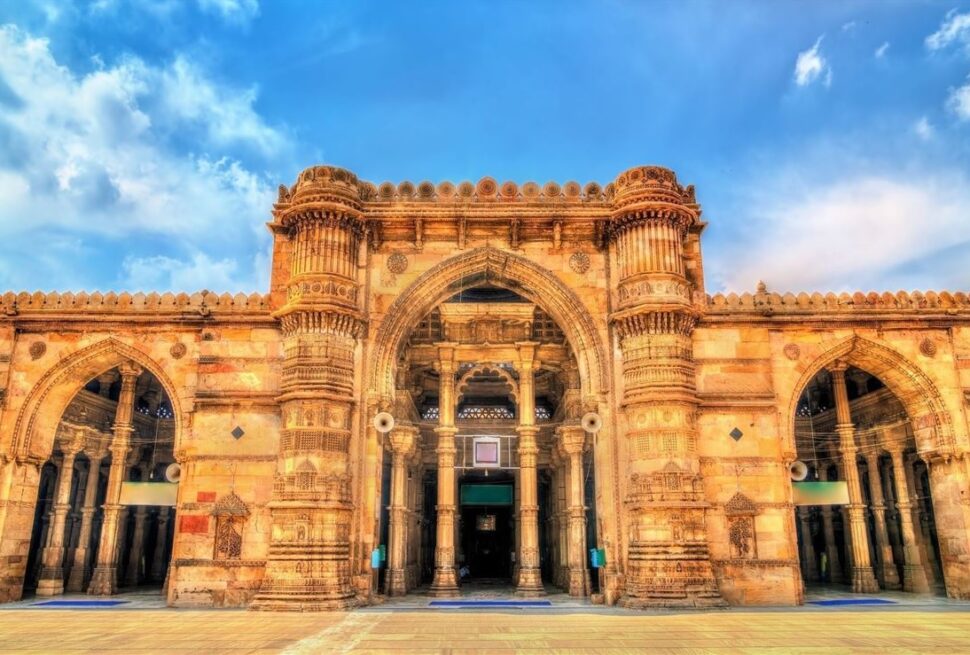 The largest and, for many, the most impressive mosque in India is the Jama Masjid in Delhi, also known as the “Friday Mosque” or “The Mosque that Looks at the World”. It was built between 1650 and 1656 on the orders of the great Mughal Shah Jahan and involved about 5,000 artisans in its construction. The courtyard of the mosque alone is 90 meters long and provides space for about 20,000 believers. The prayer hall is adorned with 260 columns and faces west towards Mecca. This magnificent building stands at a height of nine meters in the center of Delhi’s old city, which Shah Jahan called Shahjahanabad and is still called that today.