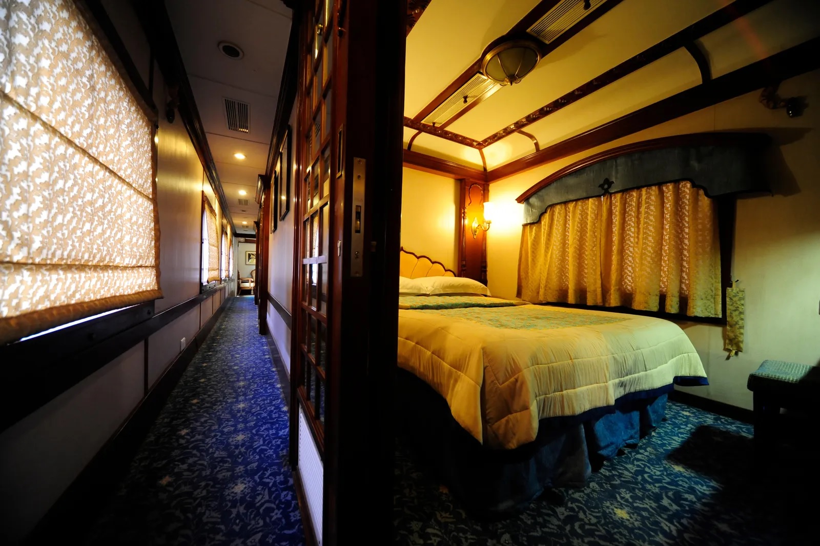 In Trains in India :2 Super Deluxe compartments – Diamond and Emerald with double beds, approximately 18 m²