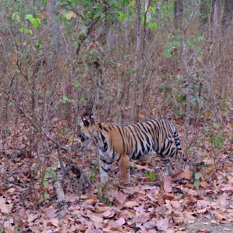 The more time you invest, the better your chances are. For this reason, I recommend a stay of at least three nights. The parks differ in terms of their tiger density. Some landscapes are easier to visit, such as the Bandhavgarh Tiger Reserve. Another crucial factor is the time of year. The winter months can be bitterly cold, so tigers come out later in the morning to warm up, and usually only after the last jeep has left the park. In mid-February the temperatures slowly rise and so does the activity of the tigers. During this time the undergrowth dries out and visibility improves. In May the thermometer can show temperatures of over 40ËšC. But if the heat doesn’t bother you, this is certainly the best time to spot tigers gathering at water sources to drink and cool off.