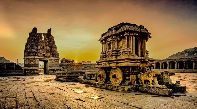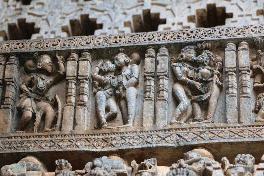 The small town of Somnathpur, 35 km east of Mysore, is home to one of the most beautiful Hoysala-style temples. The Kehsvara Temple is located in the middle of a large rectangular courtyard surrounded by a corridor with 64 cells. Three 11m high temple towers covered in figures of Gods rise above the star-shaped floor plan. The turned stone columns inside the temple and the incredible abundance of stone carvings are particularly beautiful. Decorations over 800 years old, worked out down to the finest detail, cover every centimeter. Friezes with elephants, flower tendrils, horses and riders, goddesses, sea monsters and scenes from the epic Ramayana radiate an impressive liveliness. 500 workers worked on this shrine dedicated to Vishnu for 40 years.
