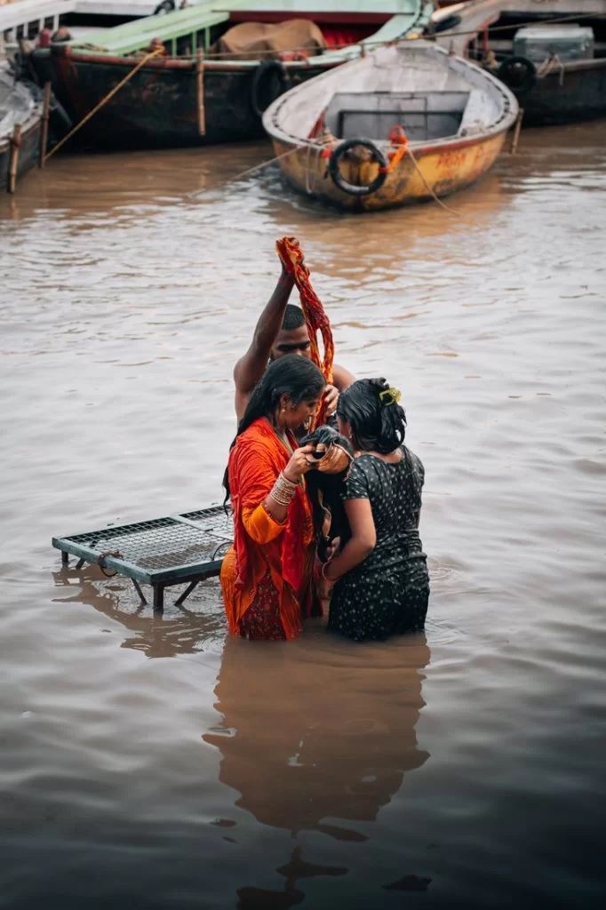 Indians have a relationship with death that is different from what we know in the West and around the world. In Hinduism, a cremation done in Varanasi stops the cycle of reincarnations, Samsara. This therefore gives them the right to access Moksha, their nirvana. The uncremated bones are kept by the families and the ashes are then thrown into the Ganges, where the Indians bathe and wash their belongings.