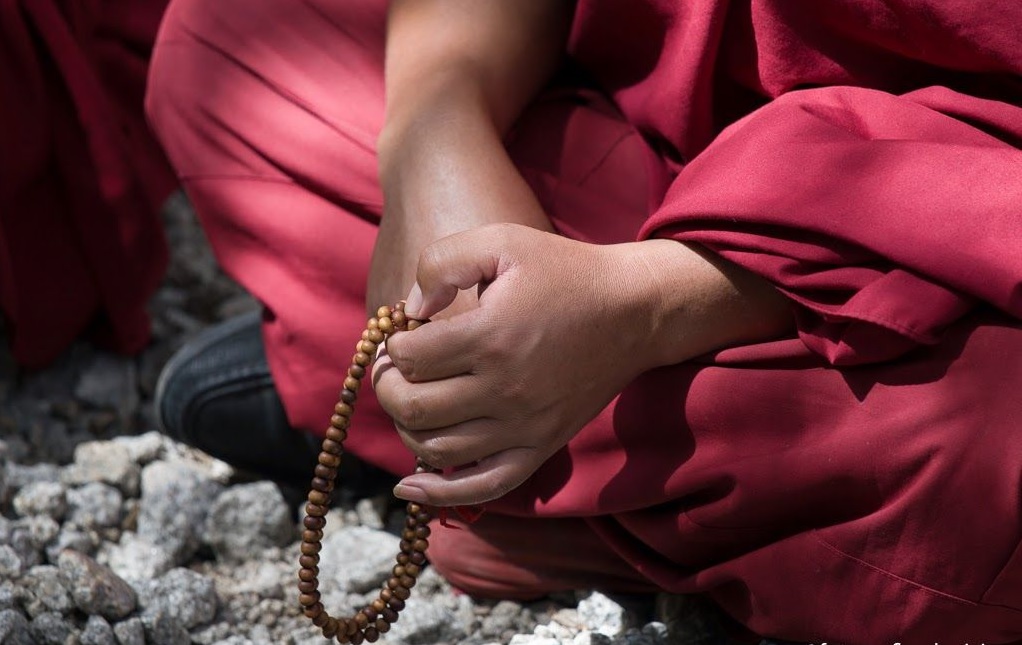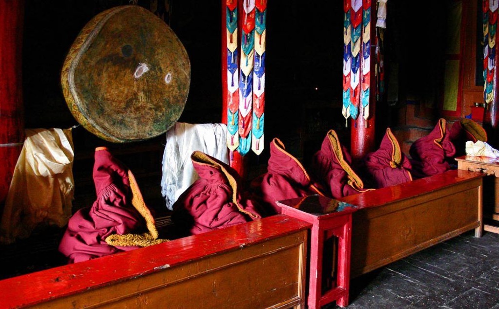 After sleeping in the monastery, at dawn we went to the monastery’s puja or prayer time and lived a fascinating experience listening to the powerful sound of the Tibetan trumpets from the roof of the temple.