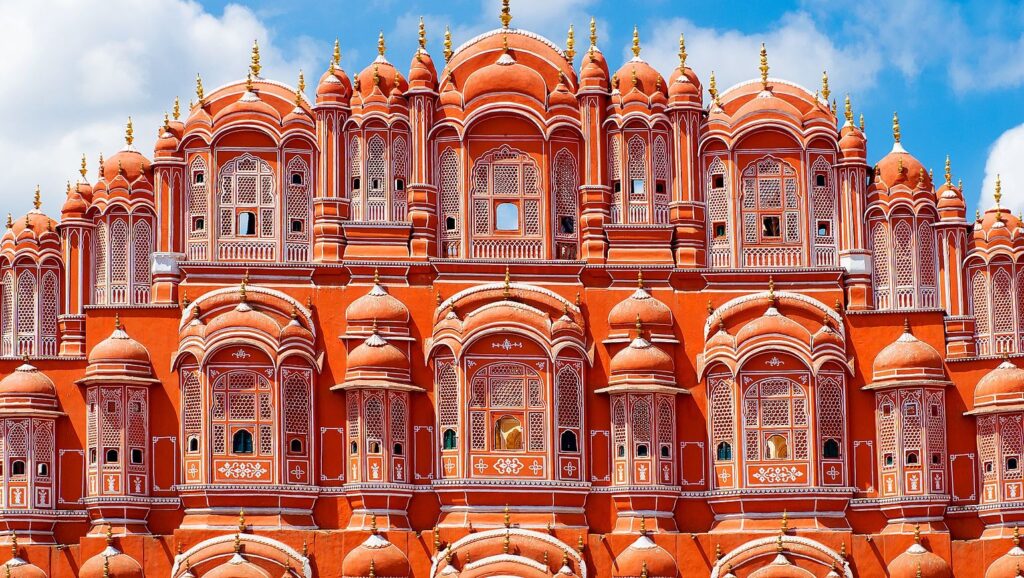 - Hawa Mahal or Palace of the Winds: it is a five-storey building of pink color, it is one of the best images of Jaipur. It has spectacular architecture and its facade is a characteristic pink color.