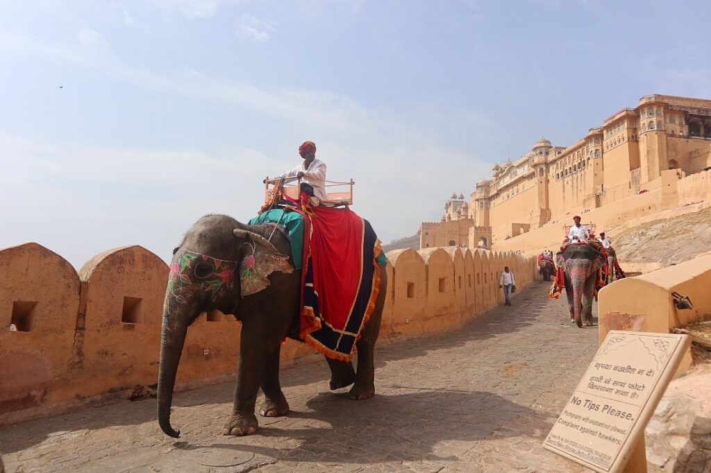 Elephants are animals worshiped by the people of Rajasthan. On the back of an elephant you can discover the corners of Jaipur as well as climb the Amber Fort.